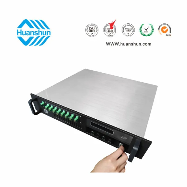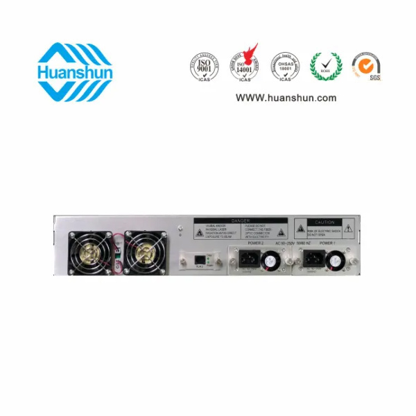 大功率光纖放大器 | YGF1508-16 | 19 " 2U/3U標(biāo)準(zhǔn)機(jī)箱,-5 ~ +10 d Bm輸入,8路標(biāo)稱規(guī)格(16、17、18、19、20、21、22、23、24dBm)放大輸出,并支持下調(diào)-2dB,安全連接模式,NF ≤ 5dB(0dBm時);內(nèi)置FWDM合波器,插播損耗 ≤ 1dB;雙模塊熱插撥電源,AC90 ~ 255V或DC-48V供電,RJ45標(biāo)準(zhǔn)網(wǎng)管(支持SNMP、WEB) |