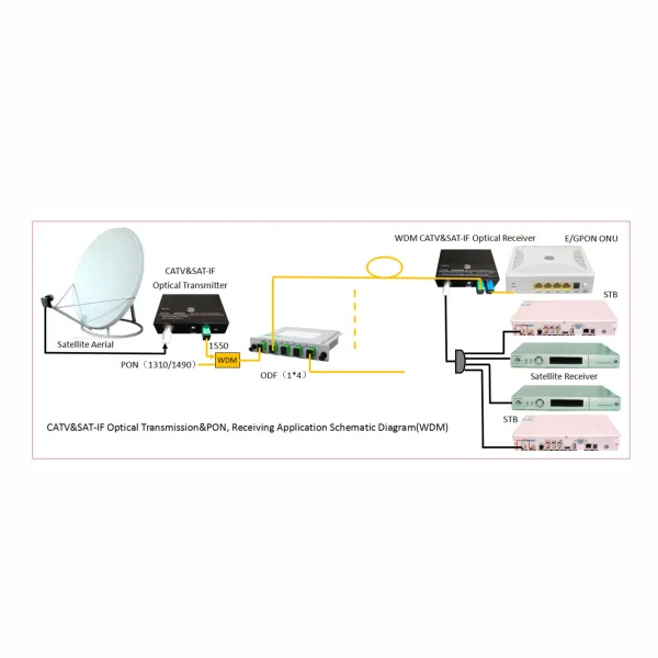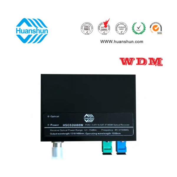 HSGS26082系列CATV&SAT-IF光接收機是一款FTTH型CATV+SAT IF高性能光傳輸設備,適用于有線電視和衛星直播電視同網傳輸。本機選用高帶寬、高靈敏度光電管和低噪聲匹配電路,全鉮化鎵IC放大,光接收范圍-15~+2dBm,光控AGC-8~0dBm/RF80dBuv恒定輸出。為方便用戶使用,本機還在面板上設有工作電源和光功率接收監測LED指示燈。HSGS2608W為WDM型CATV&SAT-IF光接收機,它工作于CATV1550nm段和PON段1490/1310nm段,用WDM波分復用技術分離出1540~1565nm波長作CATV光信號接收,把PON段1490/1310nm分離到PON端口,以作PON下聯到E/GPON ONU。